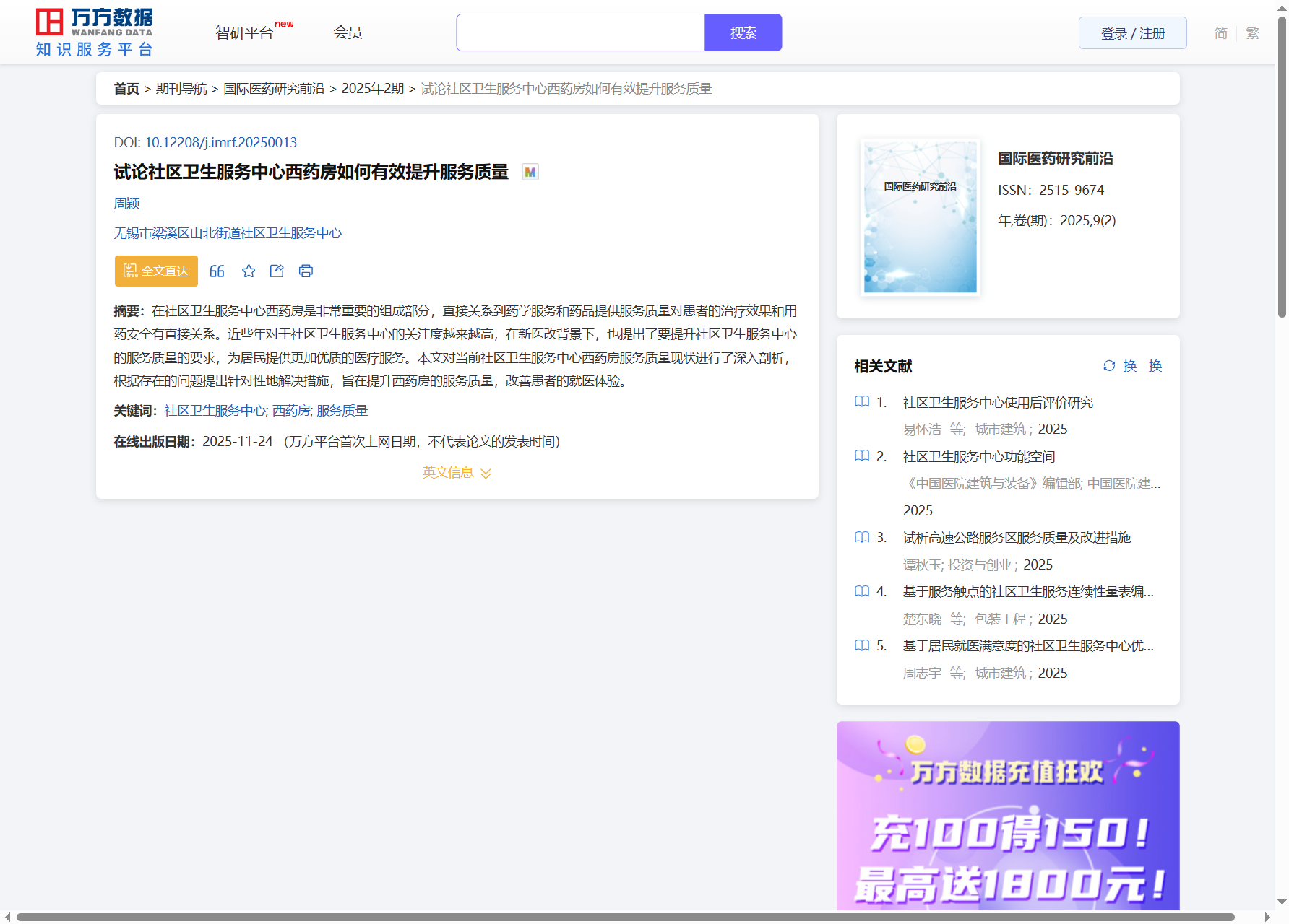 浏览量:306 全文下载:【PDF】 万方数据(WANFANG DATA)